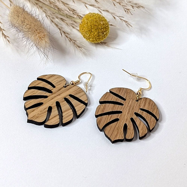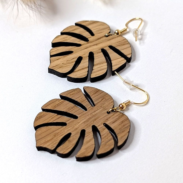 Cette paire de boucles d'oreilles modèle “Jungle” est en bois de chêne 3 mm d’épaisseur.