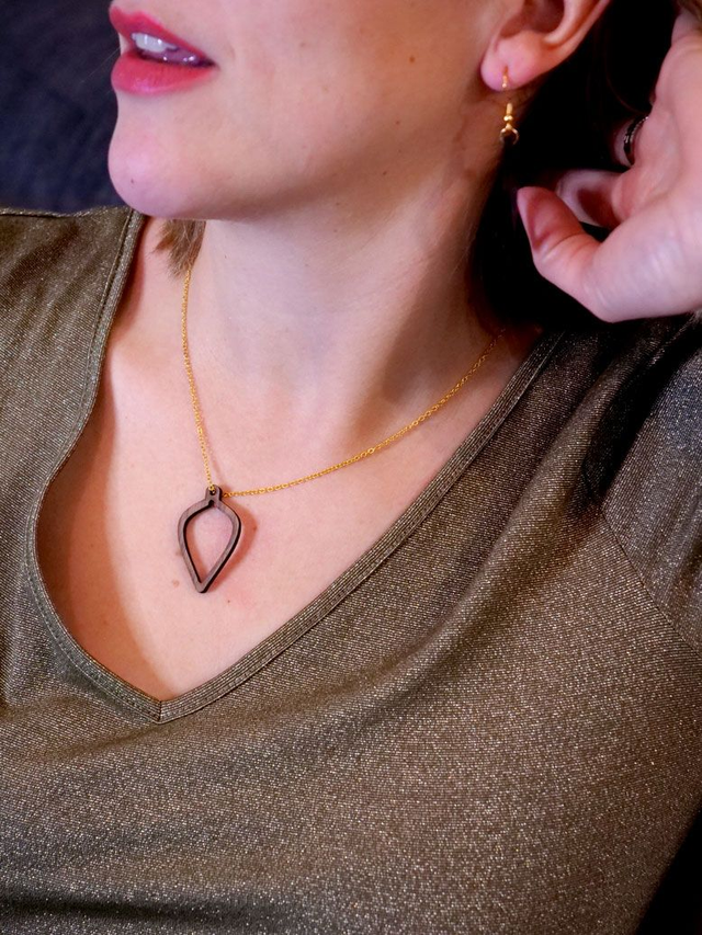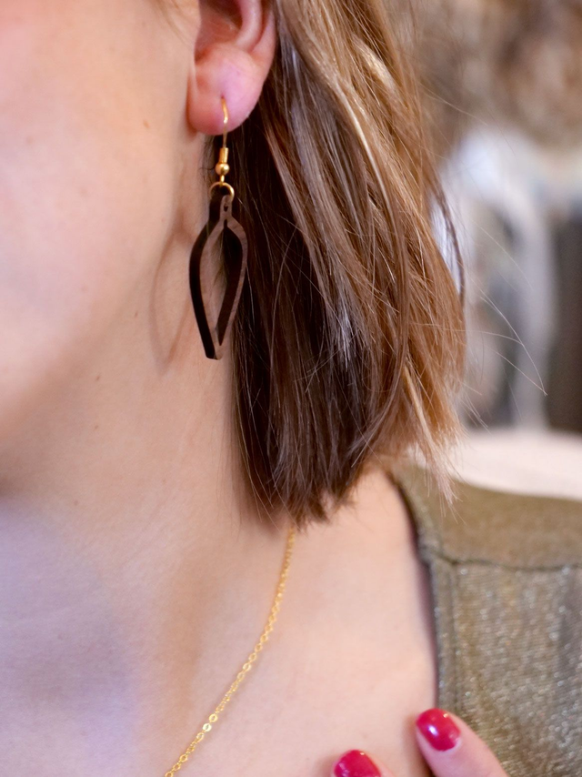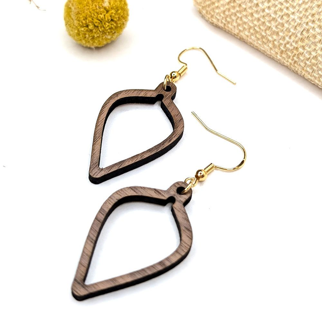 Cette paire de boucles d'oreilles modèle “Olla” est en bois de noyer 3 mm d’épaisseur.