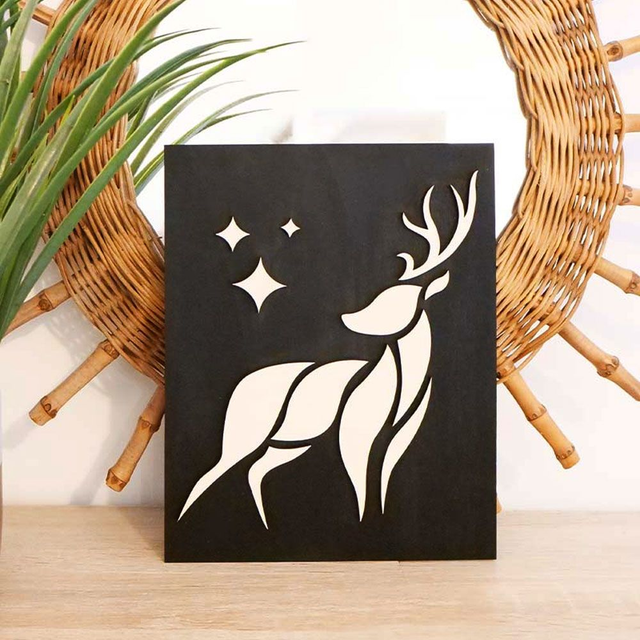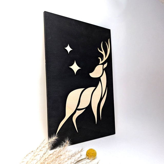 Cadre décoratif mural avec cerf en relief.