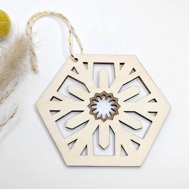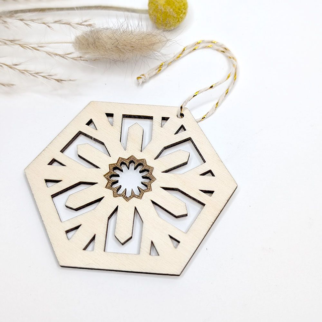 Décoration Fleur de glace en bois clair à accrocher sur son Sapin de Noël.